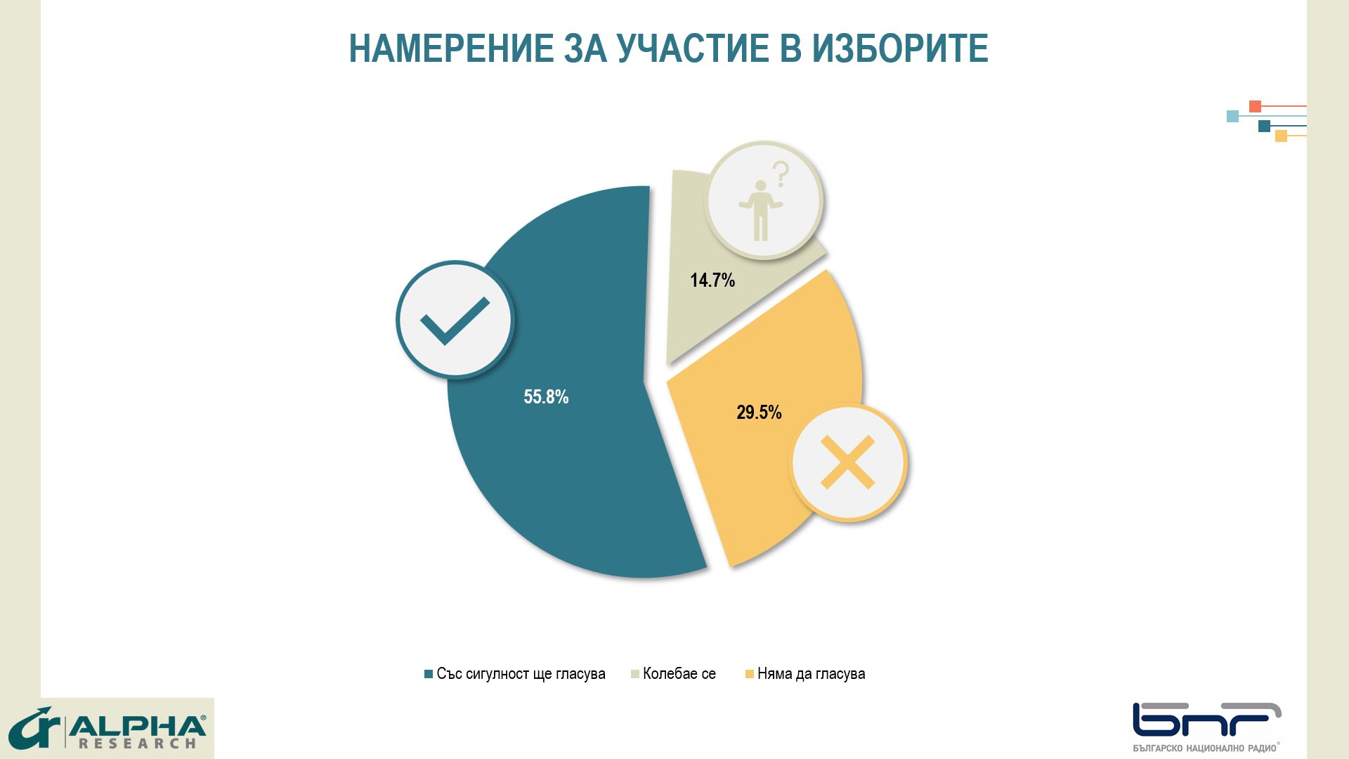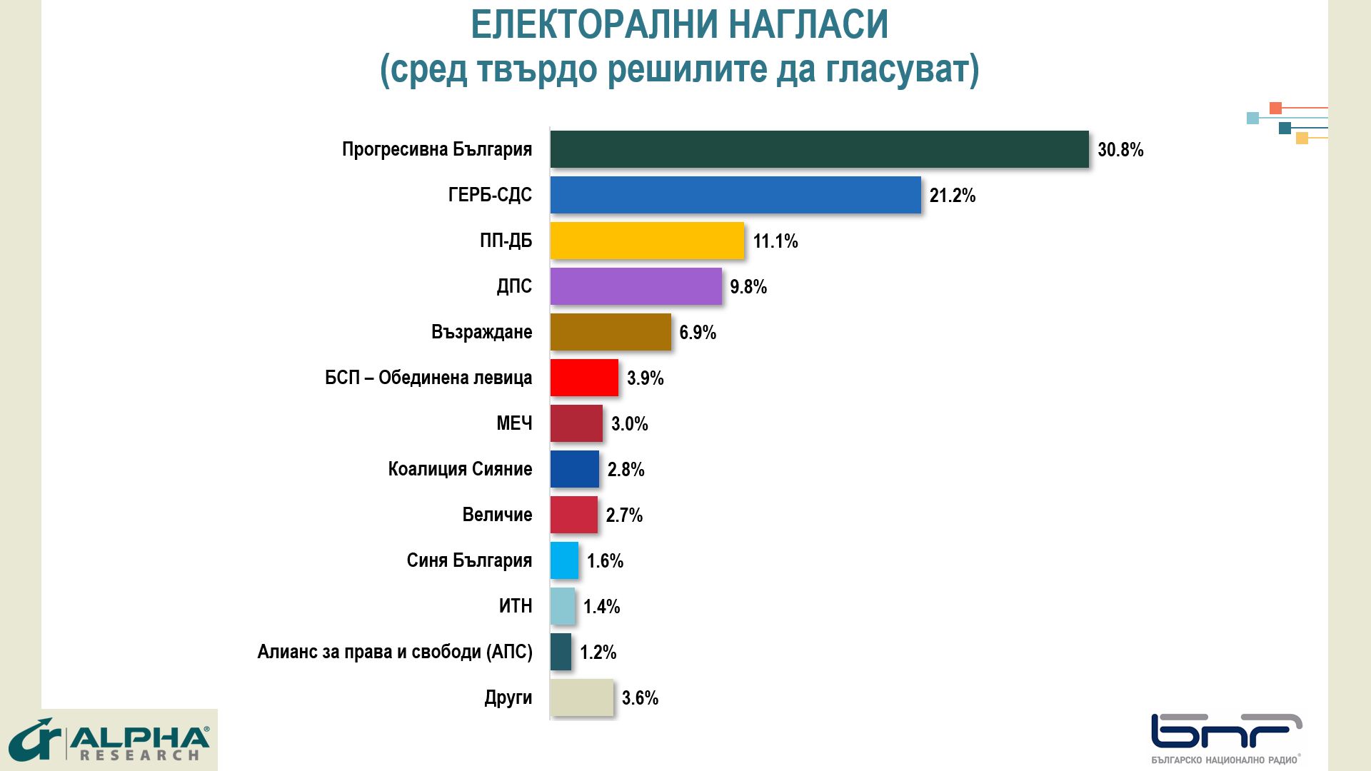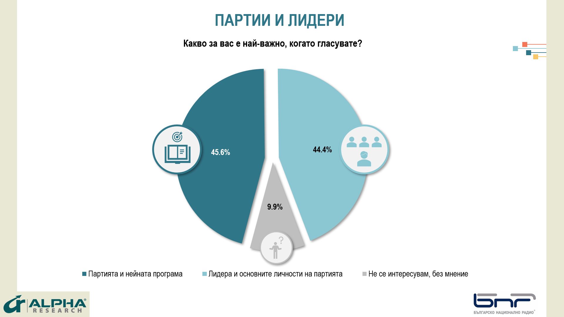 Данните са от представително за пълнолетното население на страната проучване, проведено от агенция Алфа Рисърч, по договор и с финансиране от БНР.